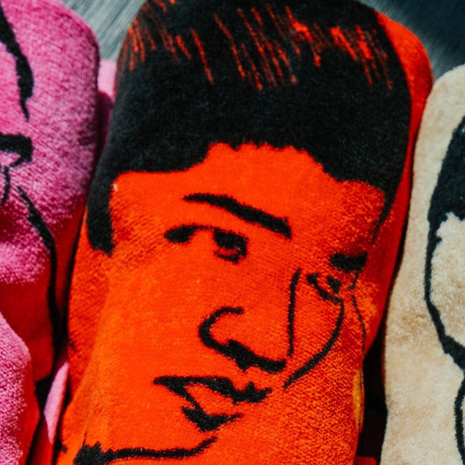 阿炎の凛々しいイラストが目を引くカラフルなフェイスタオル。