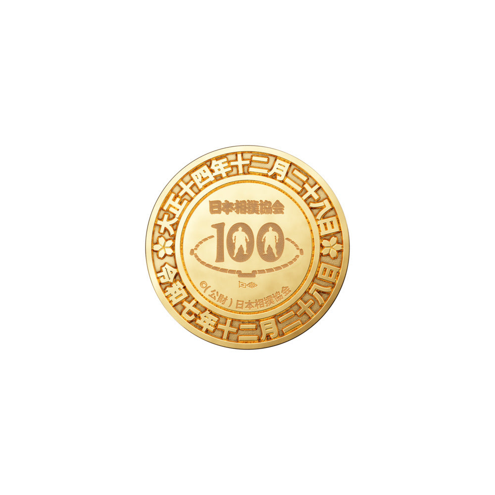 公益財団法人 日本相撲協会 創立100周年記念純金コイン(10g)発売のご案内日本相撲協会は、おかげさまで創立100周年を迎えました。 この節目を記念し、伝統と格式を象徴する「純金コイン」を販売いたします。本コインは、純金を10g使用し、直径約26.5mmの端正な意匠で仕上げました。 相撲の歴史と技を象徴するデザインを施し、100年の歩みを永く伝える記念品として相応しい逸品です。販売価格:550,000円(税込)大切なコレクションとしてはもちろん、慶賀の贈り物としてもご利用いただけます。 ぜひ、この機会に創立100周年の歴史を刻む純金コインをお手元にお迎えください。