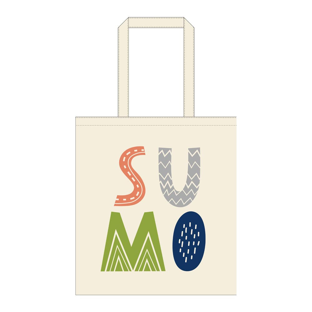 北欧風の「SUMO」ロゴが普段使いにもぴったりのコットン製エコバッグ。薄手で肩掛けできる便利なサイズ感は、サブバッグとしてもおすすめです。