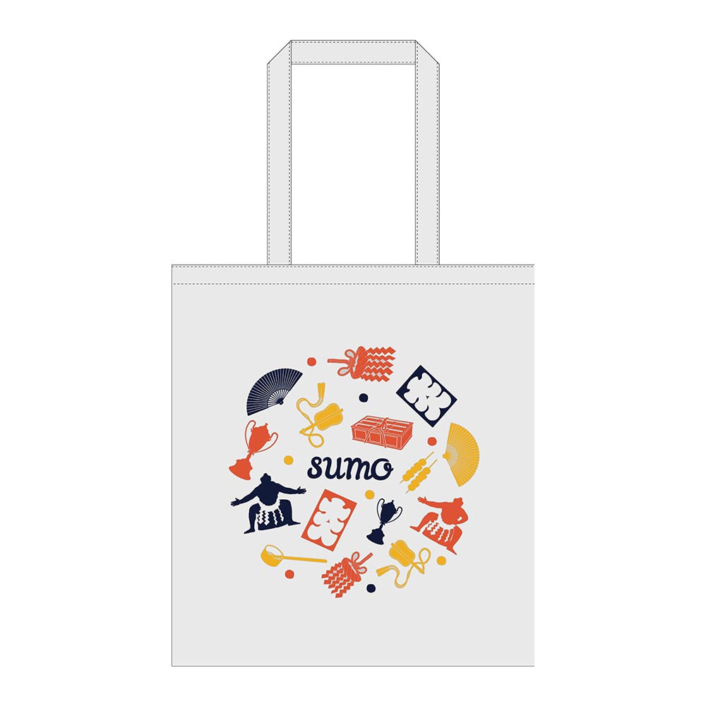 大相撲にまつわるモチーフがちりばめられたデザインの、普段使いにもぴったりのコットン製エコバッグ。薄手で肩掛けできる便利なサイズ感は、サブバッグとしてもおすすめです。