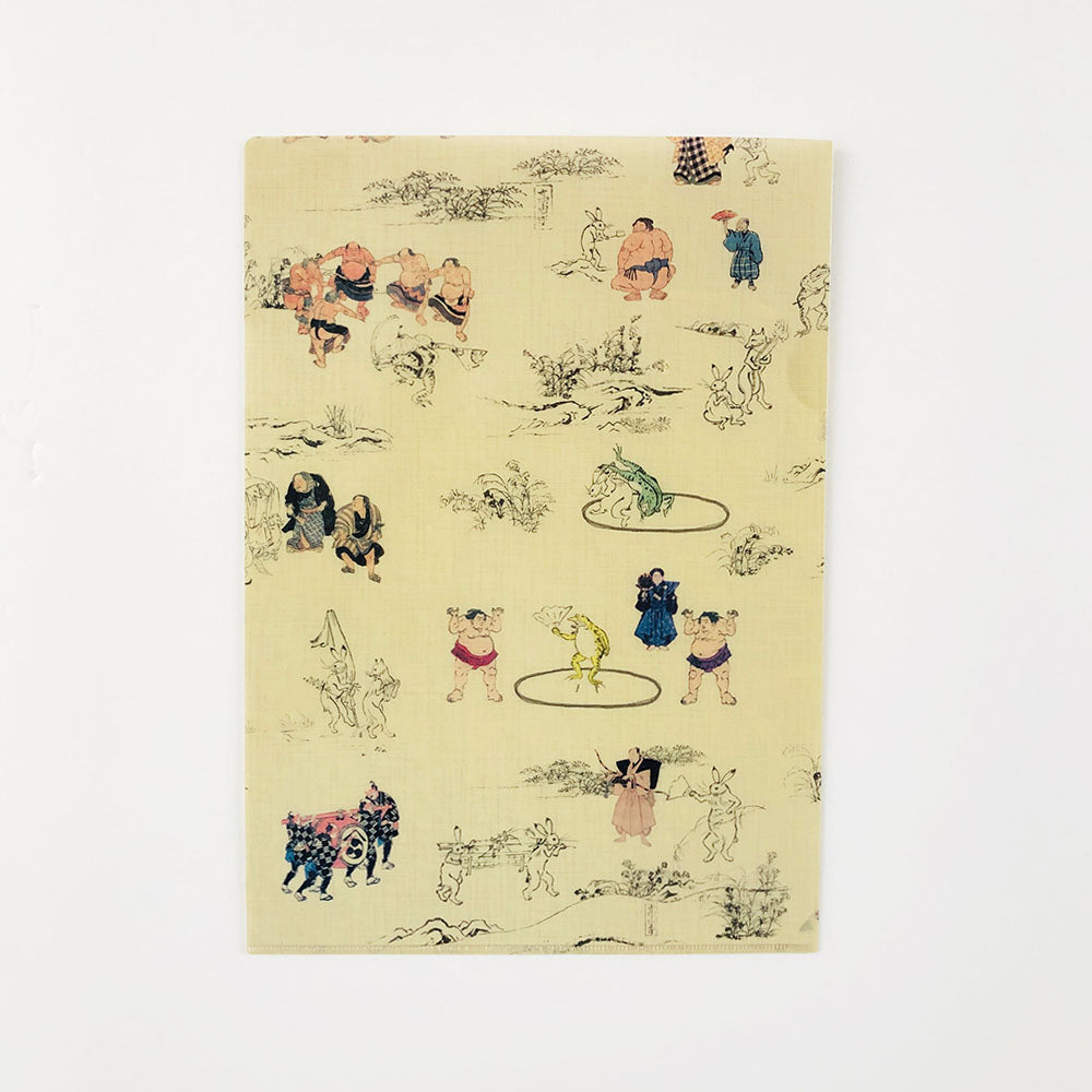 動物たちと力士が絵巻の世界で相撲を楽しむ様子がユーモラスな、ここでしか手に入れられないデザインのクリアファイルです。